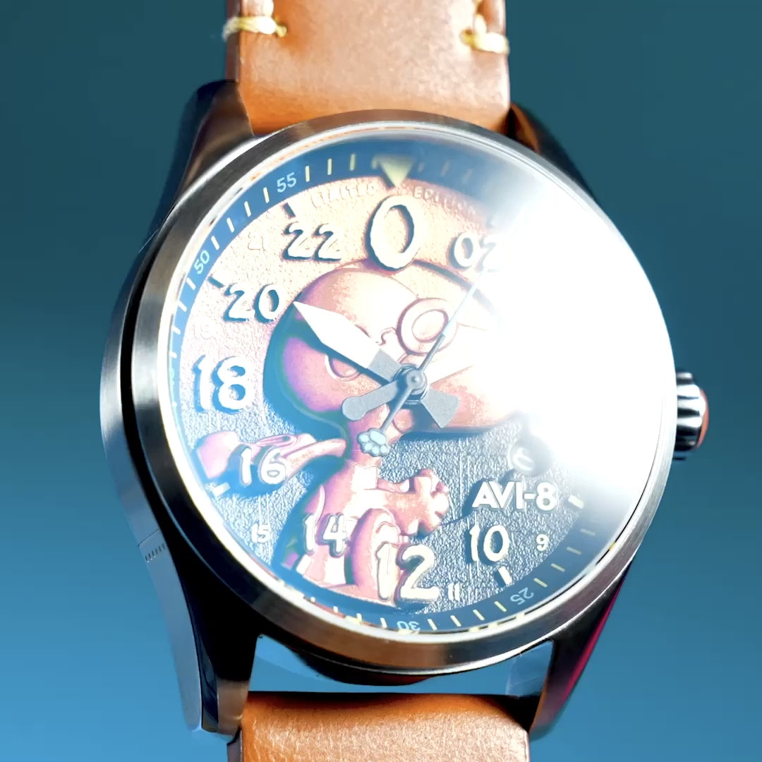 Engines roar. Snoopy is airborne. The Spitfire Peanuts Snoopy Flying Ace 24-Hour Automatic Limited Edition is now available. Rugged, stylish, and crafted for collectors, each watch carries the 24 Hour automatic movement that keeps your mission precise.